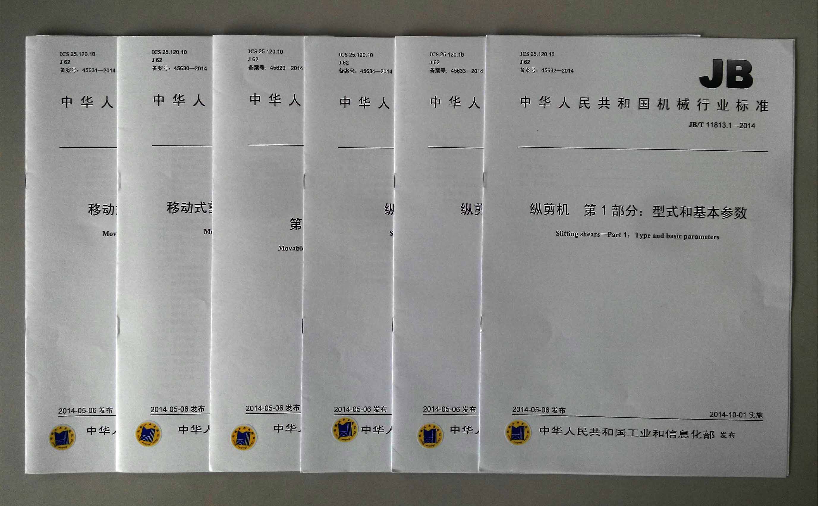 近期,集團公司負(fù)責(zé)制訂的有關(guān)縱剪機、移動剪板機的6項國家行業(yè)標(biāo)準(zhǔn)由工信部頒布,2014年10月1日正式實施。