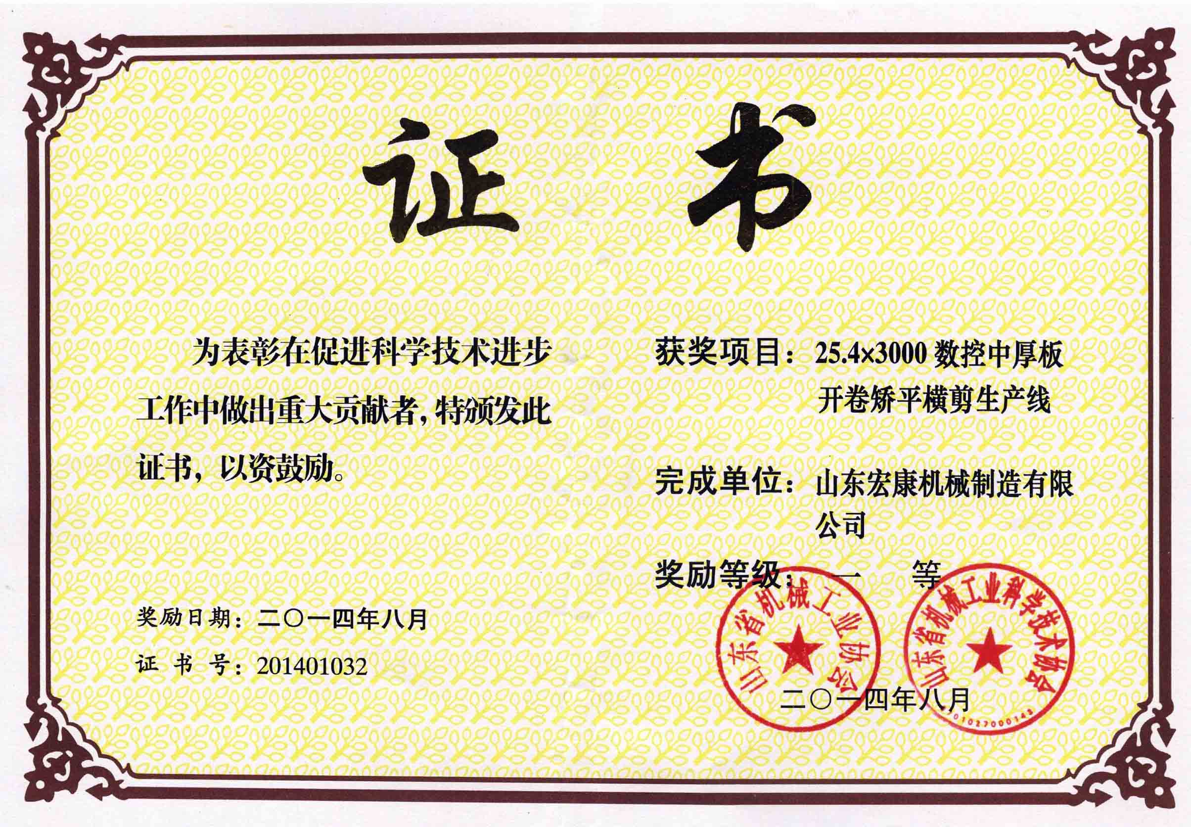 全省機械工業(yè)科技創(chuàng)新與信息化工作會議總結(jié)了全省機械工業(yè)科技創(chuàng)新和信息化工作,表彰了 2014年度山東省機械工業(yè)科技進步獎獲獎單位和個人,并邀請信息化專家就企業(yè)信息化建設(shè)、加快兩化深度融合推動產(chǎn)業(yè)升級等內(nèi)容作專題報告。集團公司“25.4×3000數(shù)控中厚板開卷矯平橫剪生產(chǎn)線”、“CMK400×2000數(shù)控龍門拖板臥式車床”兩個項目分別獲得2014年度山東省機械工業(yè)科技進步一、二等獎。